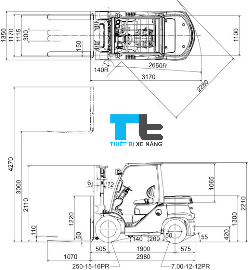 KÍCH THƯỚC XE NÂNG DẦU 4 TẤN TOYOTA |