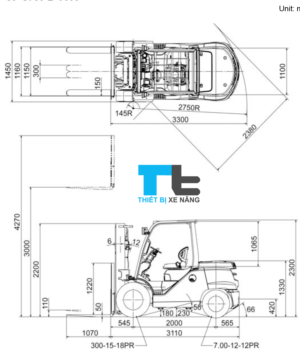 KÍCH THƯỚC XE NÂNG DẦU 4.5 TẤN TOYOTA
