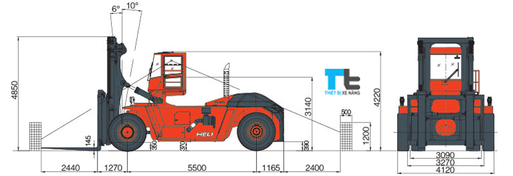 | Độ nghiêng cột nâng (Trước/sau) | ° | 6°/10° |