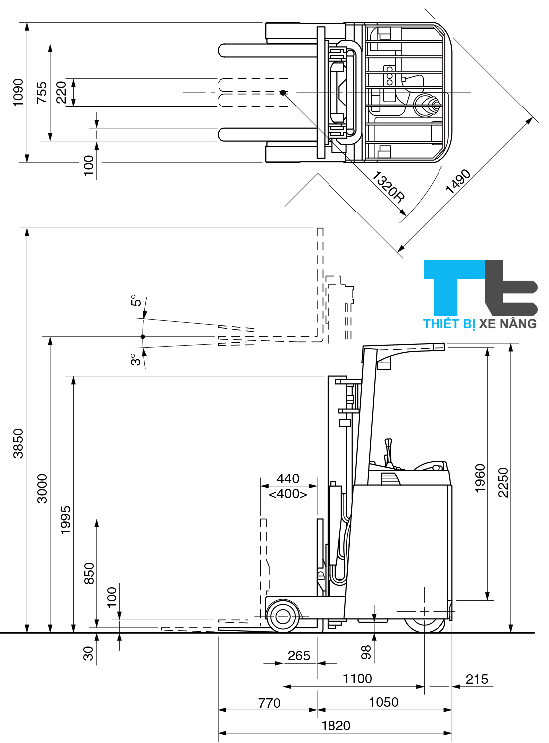 | Chiều dài đến càng nâng (D) | mm | 1050 |