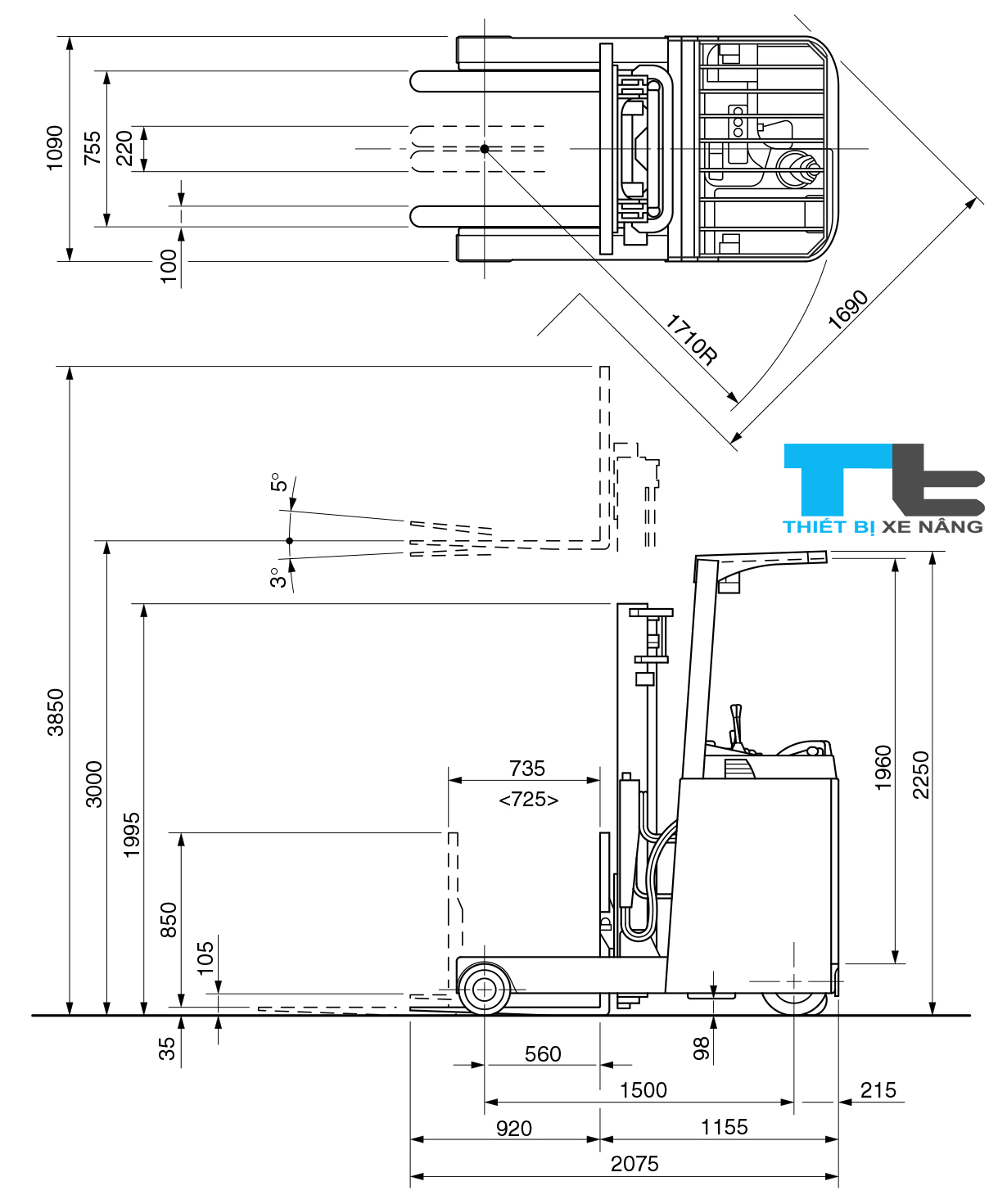 | Chiều dài đến càng nâng (D) | mm | 1155 |