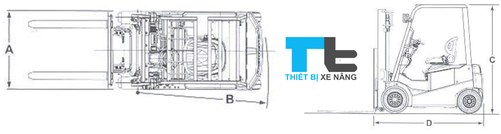 Hình vẽ tổng thể xe nâng điện 2 tấn Toyota | 4 bánh - Ngồi Lái |