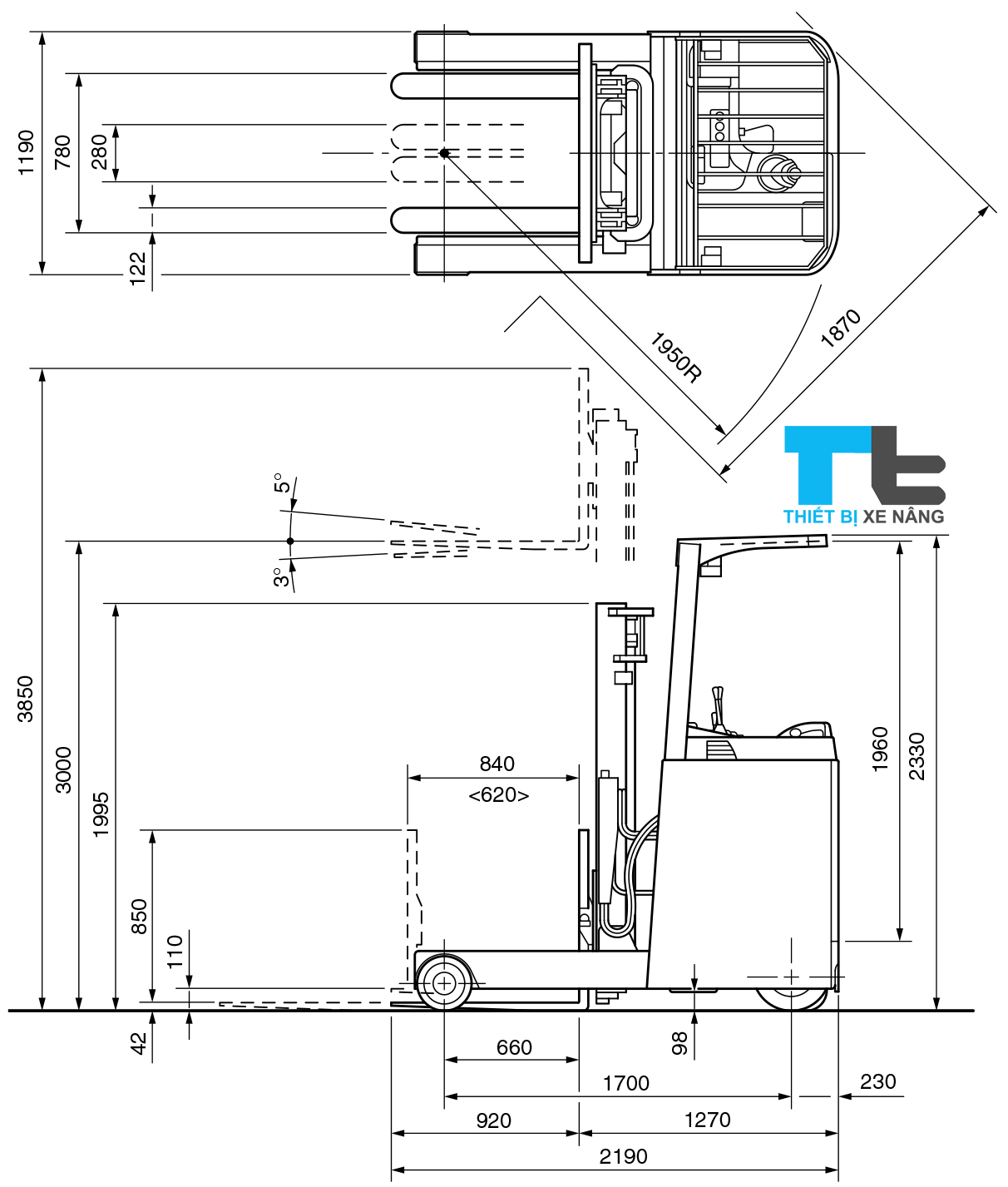 | Chiều dài đến càng nâng (D) | mm | 1270 |