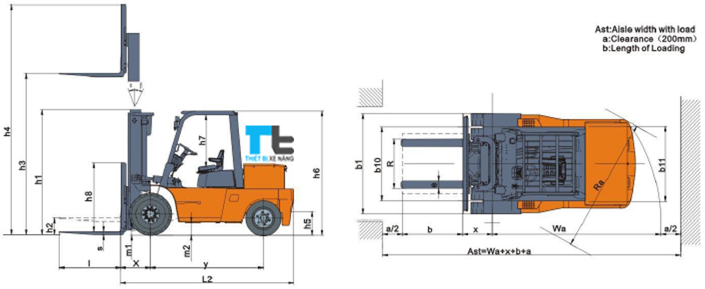 KÍCH THƯỚC XE NÂNG ĐIỆN 7 TẤN HELI